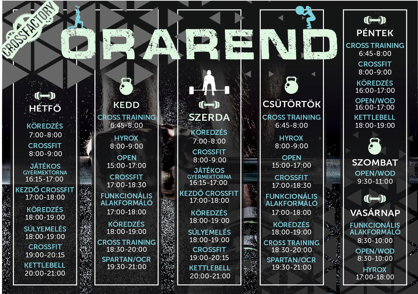 Higgyünk abban, hogy minden sport jobbá, erősebbé tesz minket! Építi a testet és a lelket is!A konditermek erősítő edzéseivel szemben a crossfit edzéseken csoportban végezzük a gyakorlatokat, többféle mozgásformát kombinálunk, és olyan alapképességeket fejlesztünk, mint a mobilitás, az izom, az egyensúly és az állóképesség. Vendégeink szeretnek hozzánk járni, mert magas szaktudású edzők foglalkoznak velük, mert nincs két egyforma edzés, és egymásra épülő folyamatos fejlődést biztosít. És hogy kinek ajánljuk? Mindenkinek! Neked, aki gyermekének megfelelő sportot keres, neked, aki a sok tanulás mellett mozogni vágysz, neked, aki a munka után velünk tartanál, és neked is, aki gyermeked születése után ismét önmagad szeretnél lenni.